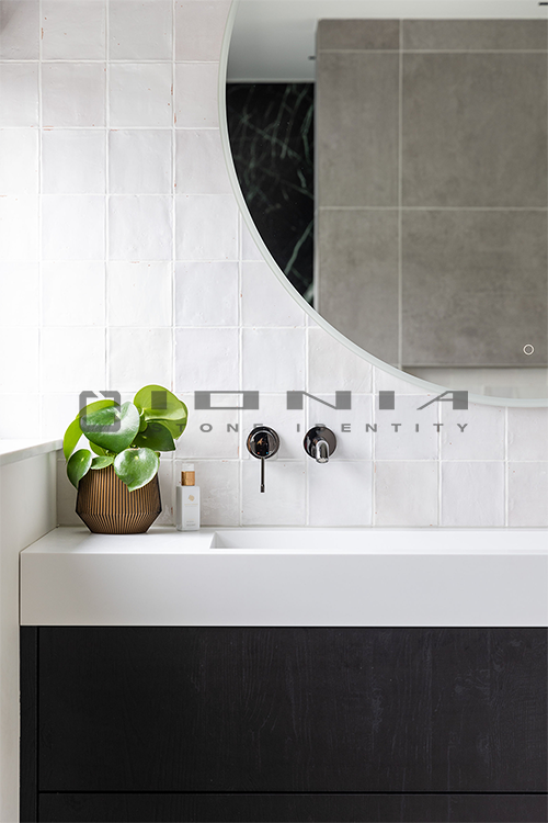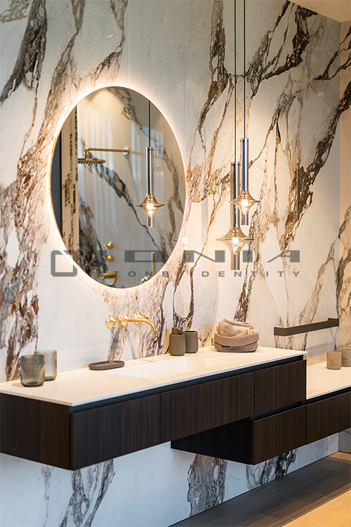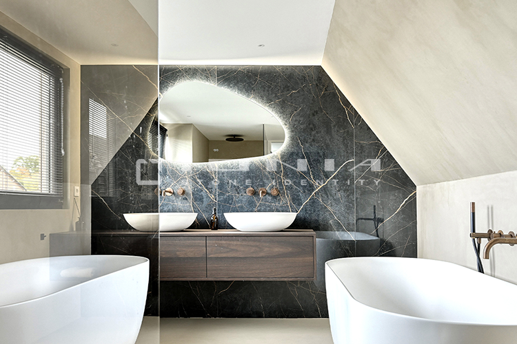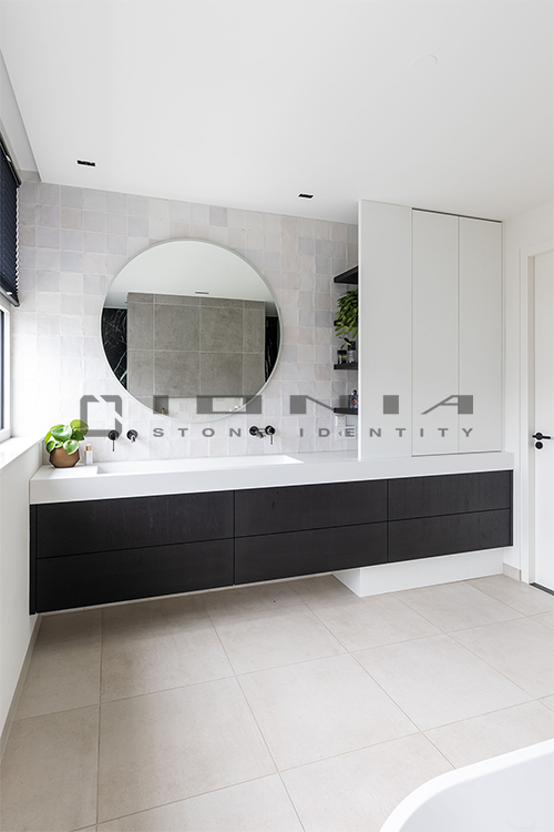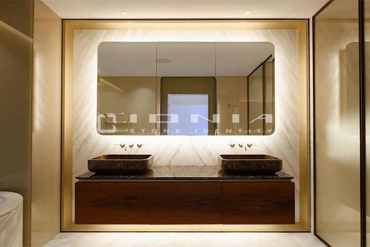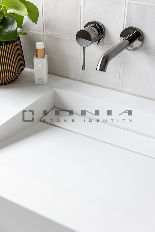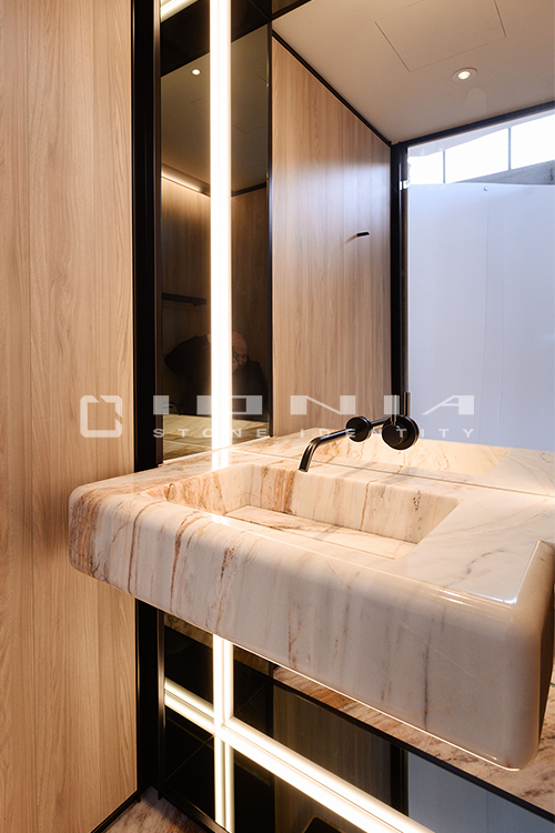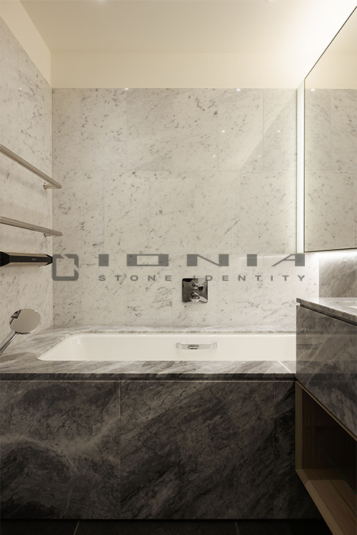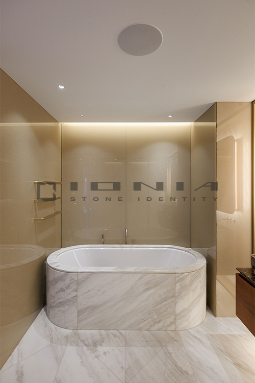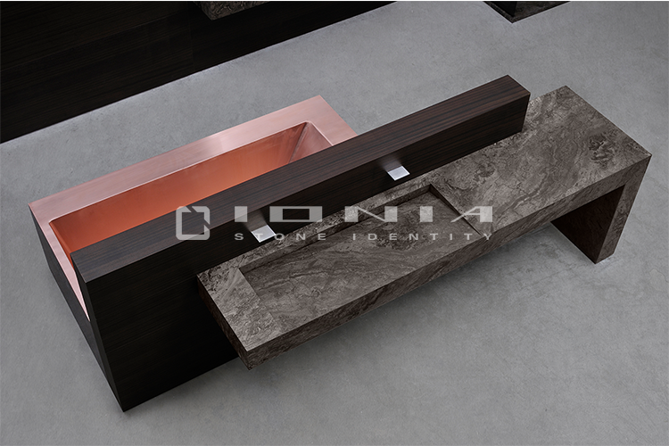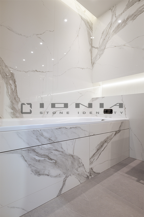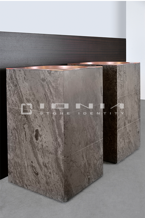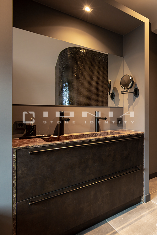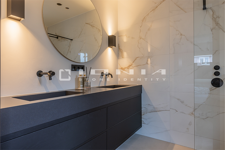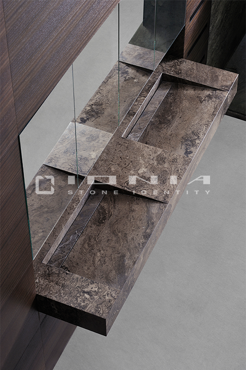 In the bathroom vanity top segment, Ionia Pietre Naturali offers bespoke solutions alongside a wide range of standard yet highly customizable products. Designed to fit harmoniously into any setting, whether modern and minimalist or more decorative, these solutions include an extensive selection of wall-mounted, countertop or freestanding sinks, allowing the creation of a refined and highly functional space that perfectly balances aesthetics and practicality. Modularity is a key feature, enabling each composition to be tailored to specific dimensions and configuration. Every detail is meticulously crafted to ensure a perfect balance between design, material quality, and artisanal precision. By combining cutting-edge technologies with exclusive craftsmanship, Ionia Pietre Naturali creates bathroom countertops that enhance the natural beauty of Natural Stone, Porcelain Stoneware and Quartz Composite, transforming any space into a timeless and elegant environment. With a unique blend of innovation and tradition, Ionia Pietre Naturali delivers solutions that combine aesthetics, durability, and functionality, meeting the highest standards of the market.