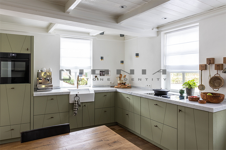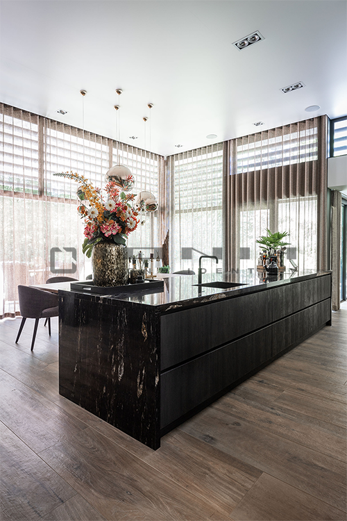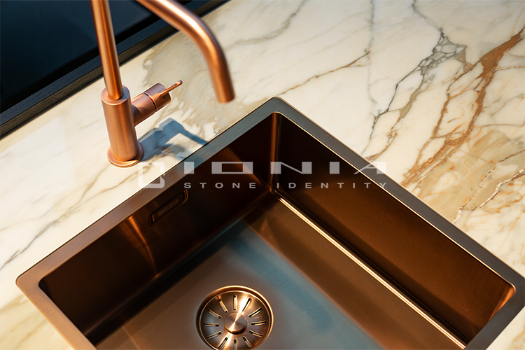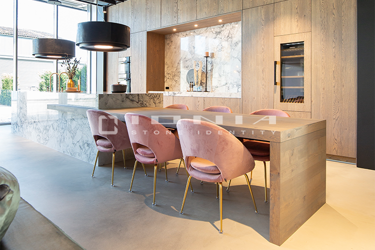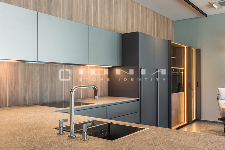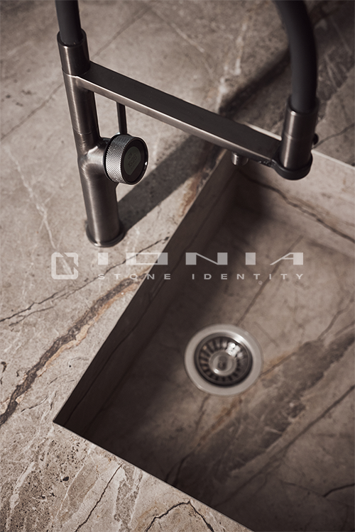 Every kitchen has its own unique identity. That’s why Ionia Pietre Naturali creates bespoke kitchen countertops of the highest craftsmanship, designed to seamlessly blend with any style and space. With an extensive range of premium materials and finishes, the company transforms porcelain stoneware, natural stone, and quartz composite into exclusive, custom-made solutions. Integrated and boxed sinks, side panels, legs, doors, and matching claddings ensure a cohesive and sophisticated design. Every detail is crafted with precision, from bevelled, straight, curved, or custom-profiled edges to Apron edges designs with a seamless 45° joint for a monolithic effect. Functionality meets aesthetics with integrated cutouts for flush-mounted or undermounted appliances, LED grooves, built-in draining grooves, and recessed drainers. From material selection to final finishing, each Ionia Pietre Naturali countertop is a perfect balance of craftsmanship, innovation, and meticulous attention to detail.
