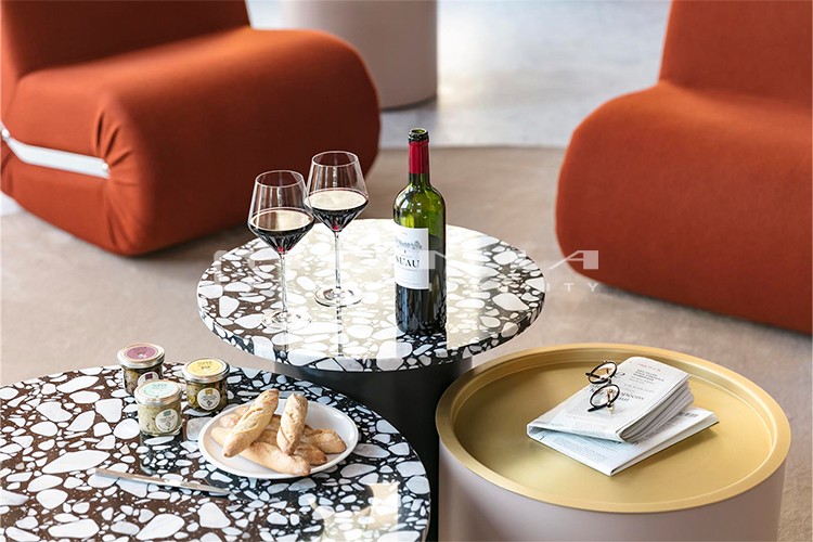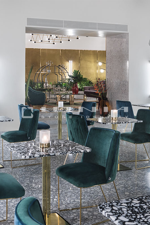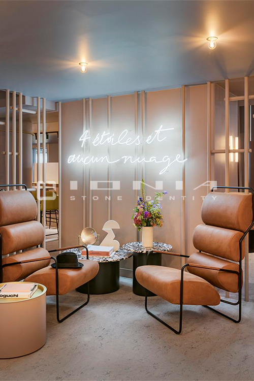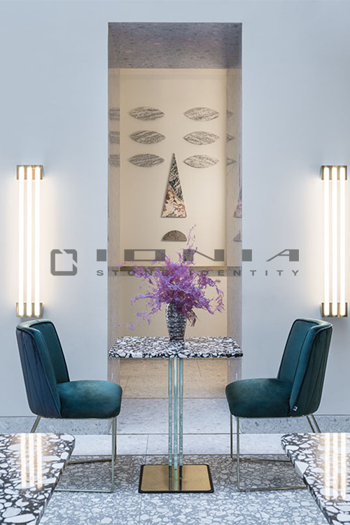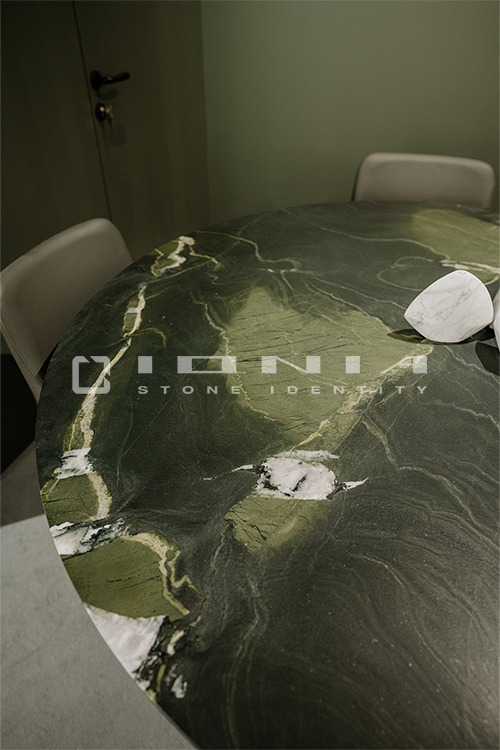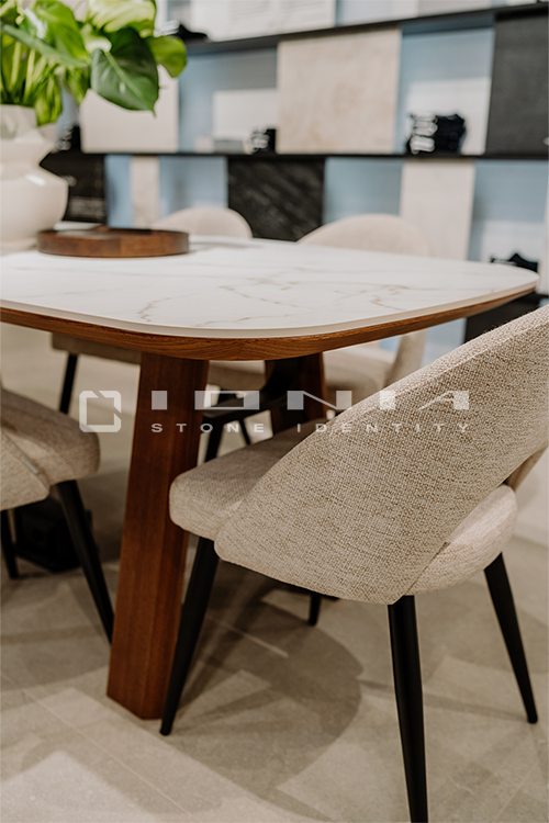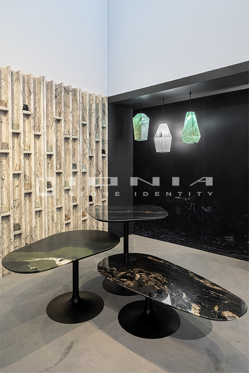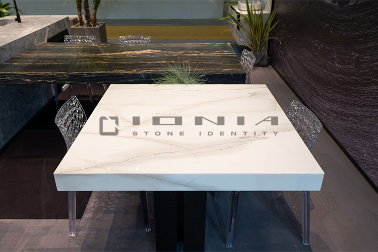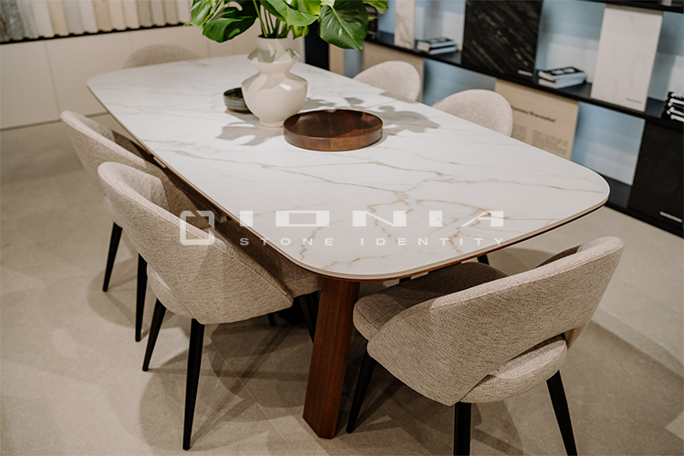Ionia Pietre Naturali designs custom-made tabletops for the contract sector, essential elements for kitchens, dining rooms, offices, living areas, and outdoor spaces. Each tabletop is crafted to blend seamlessly into any setting, combining aesthetics and functionality with high-quality materials. From modern to classic styles, every tabletop is meticulously crafted to meet specific design and project requirements. The flexibility in sizes and finishes allows for the creation of extendable, round, or square surfaces, with bevelled, chamfered, rounded, or profiled edges. Thanks to advanced technology and expert craftsmanship, every detail is designed to ensure a high-end result, enhancing the beauty and durability of porcelain stoneware, natural stone, and engineered quartz. A perfect balance between innovation and tradition, Ionia Pietre Naturali delivers customized tabletops that meet the needs of contemporary interior design and the contract sector, transforming every space into a refined and exclusive environment.